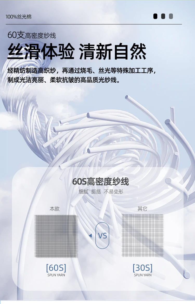 絲光棉經(jīng)過特殊的燒毛、絲光處理,有絲綢般的光澤,強度更高、抗皺性更好,染色更鮮艷且尺寸更穩(wěn)定;普通純棉則更強調(diào)天然特性,相對來說,光澤度和抗皺性不如絲光棉。