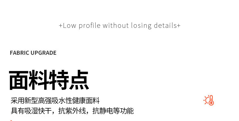 特性:吸濕干爽,抗紫外線,時尚有型